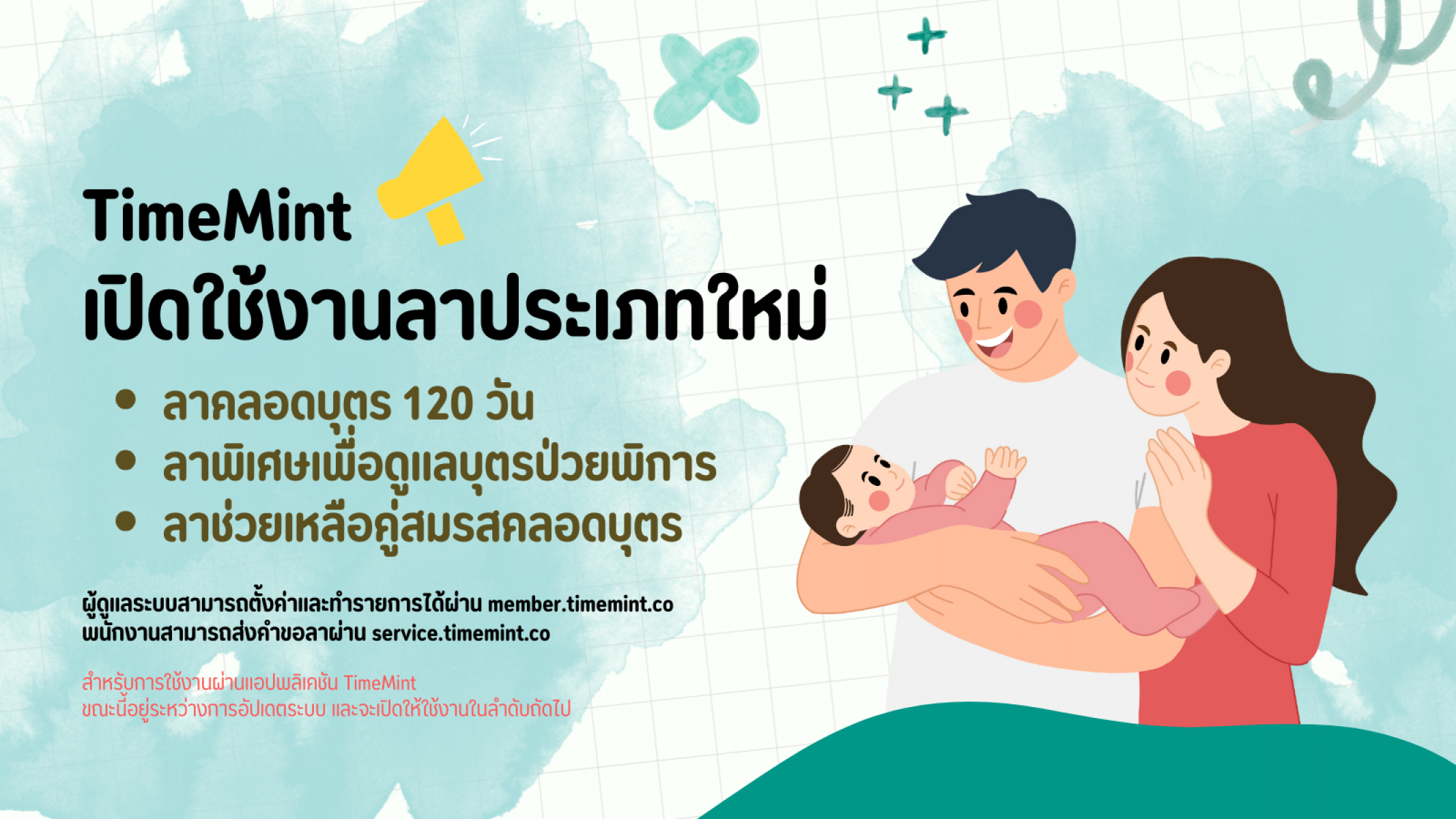 ผู้ดูแลระบบสามารถตั้งค่าและจัดการรายการลาได้ผ่าน member.timemint.co พนักงานสามารถส่งคำขอลาผ่าน service.timemint.co