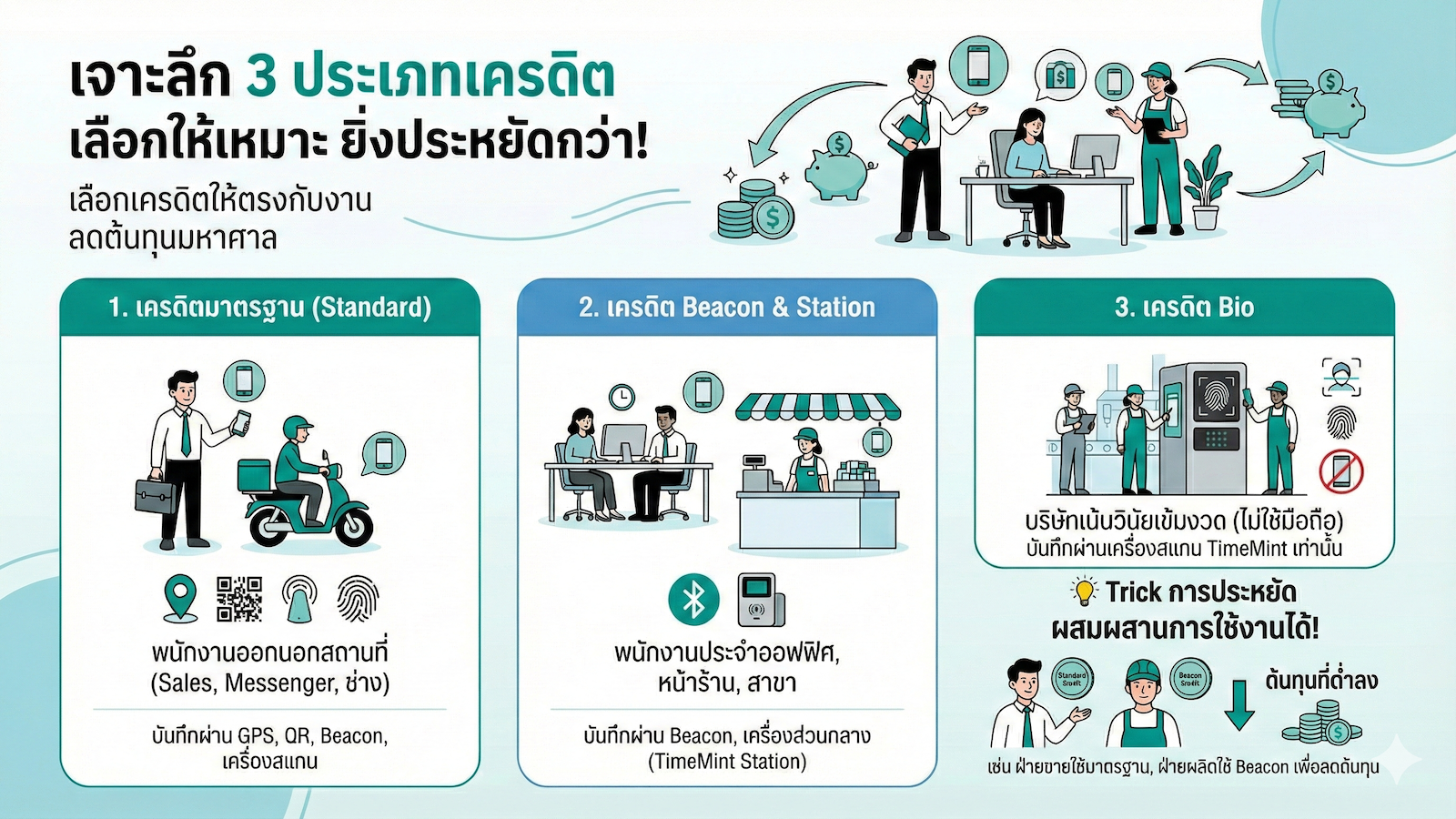 Trick การประหยัด: คุณสามารถผสมผสานการใช้งานได้! เช่น พนักงานฝ่ายขายใช้เครดิตมาตรฐาน ส่วนพนักงานฝ่ายผลิตใช้เครดิต Beacon เพื่อให้ได้ราคาต้นทุนที่ต่ำลง